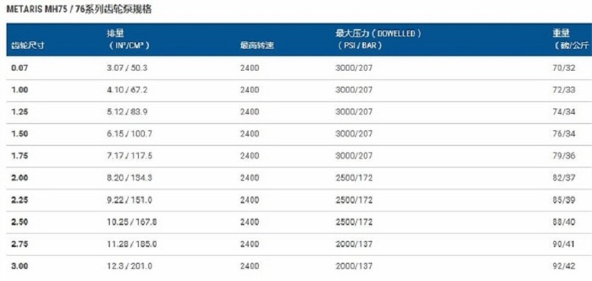 综上所述,MH75/76系列麦塔雷斯METARIS齿轮泵以其高效性能、结构坚固、易于维护、多种配置选项以及广泛的应用领域等特点,成为了工业应用中的优选产品。在选择和使用时,建议根据具体的应用场景和需求进行综合考虑,以确保选择到最适合的齿轮泵型号。