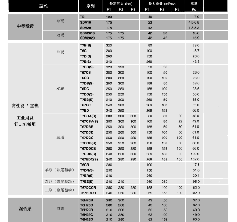 T7系列丹尼逊叶片泵包含多个型号,这些型号在结构、性能和应用方面可能有所不同。以下是对T7系列丹尼逊叶片泵型号系列的详细介绍: