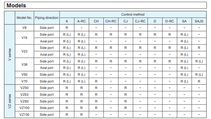 - 05YEOSHE油昇V18A1R10X,V18A2R10X,V18A3R10X柱塞泵特征及参数说明