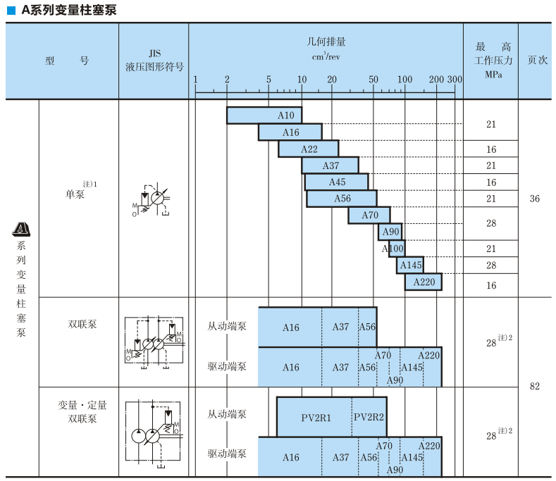 - 05YEOSHE油昇V18A1R10X,V18A2R10X,V18A3R10X柱塞泵特征及参数说明